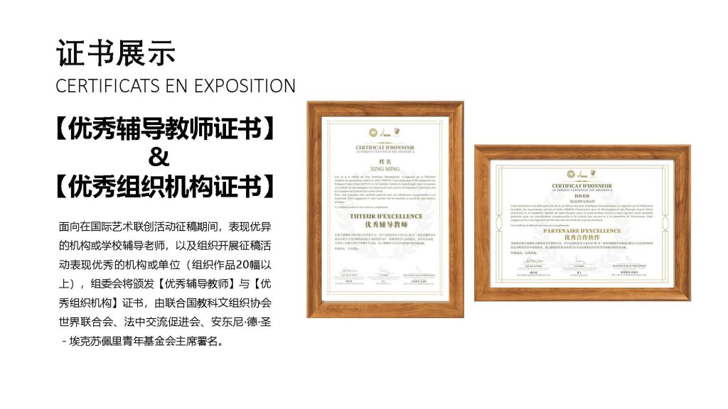 第四届国际艺术联创由联合国教科文组织协会世界联合会、法中交流促进会与安东尼·德·圣-埃克苏佩里青年基金会联合主办,于2025年5月正式启动征稿,并计划于2025年寒假(暂定)在法国巴黎卢浮宫卡鲁塞尔厅举办全球优秀作品展。